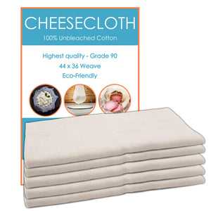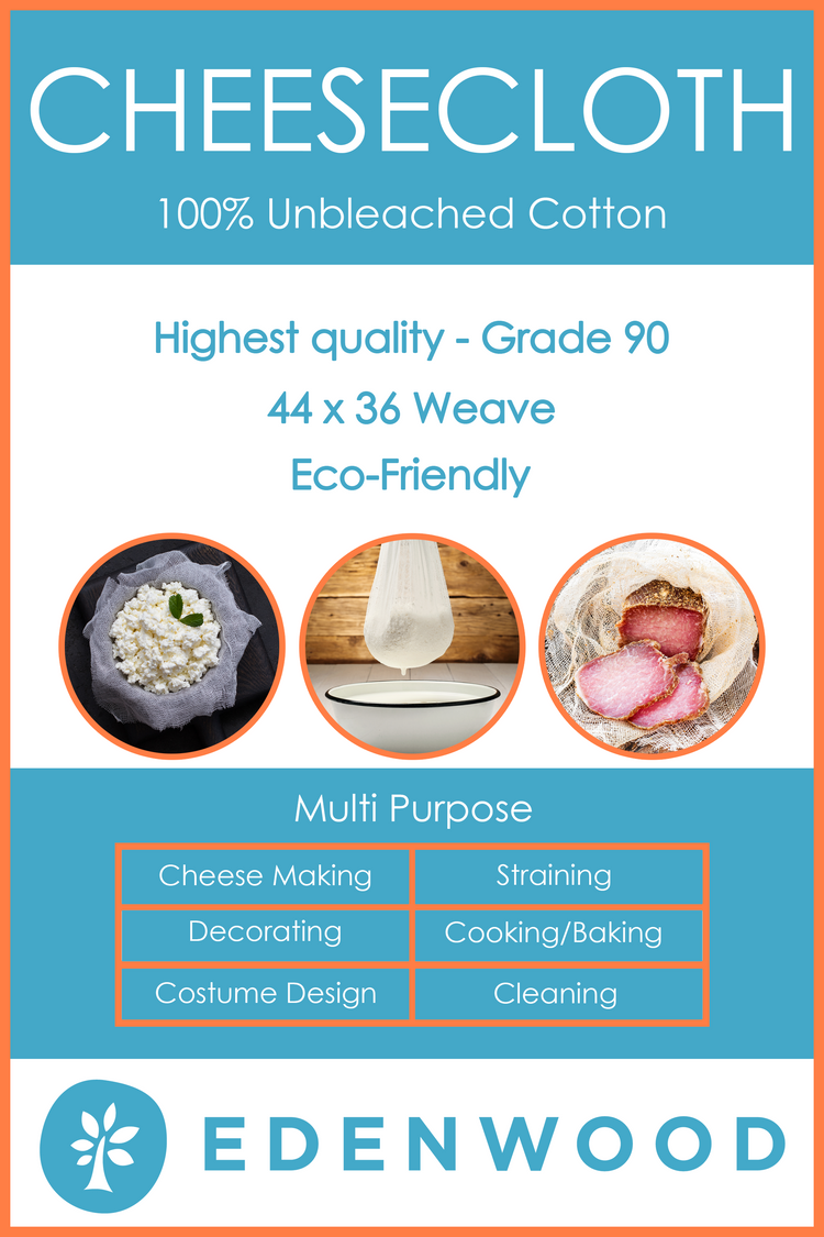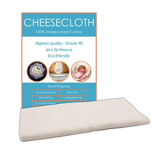 The cotton cheesecloth is Eco-friendly and of the highest quality with a Grade 90 making it the perfect cheese strainer for making cheese, jam, yoghurt, juice strainer and nut milks.