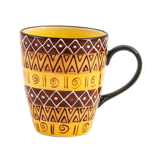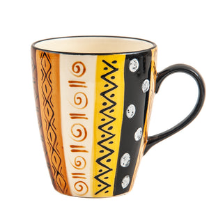 - A vibrant ceramic mug, with an African inspired, Ebony & Ivory design. Each piece is uniquely hand-painted, with variations adding to its charm. Ideal for colourful or African-inspired decor.