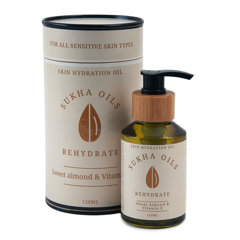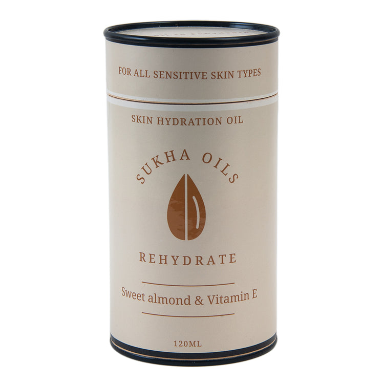 - Rehydrate – Lightweight and soothing, antioxidant rich almond oil blend with added vitamin E hydrates sensitive skin and supports collagen for a healthy, youthful glow.