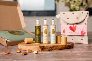 Wellbeing set of 3 x 10ml vegan pulse point aromatherapy blends, perfect for travel or gifting.