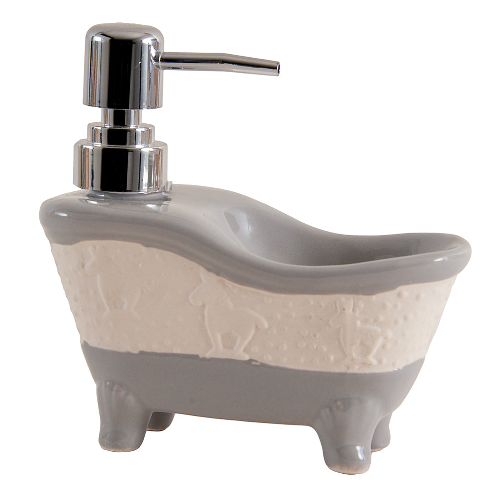 Bath Shaped Ceramic Liquid Soap Dispenser, Grey and White, 100ml