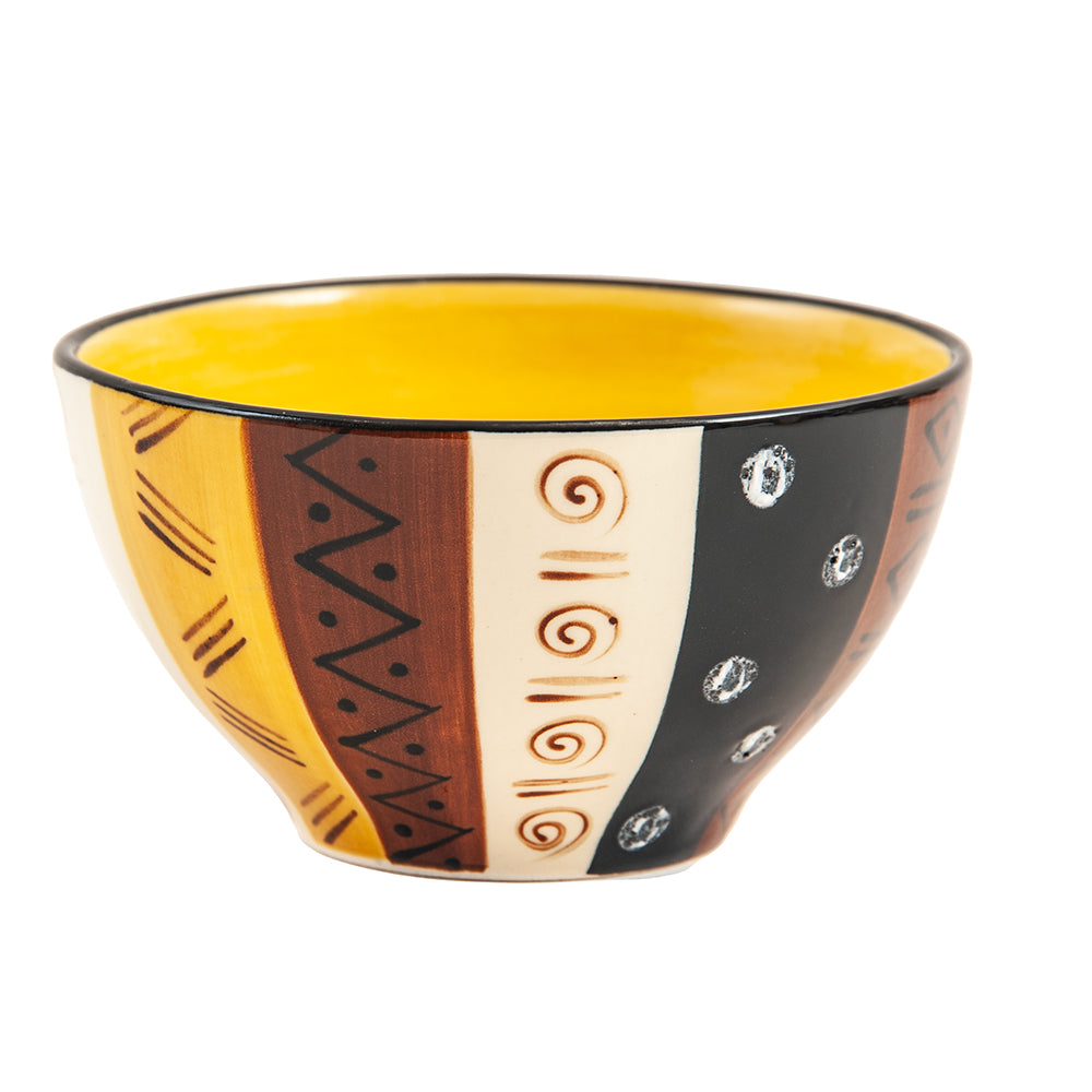 Bold, traditional Earth tones inspired, small round salad bowl, rooted in African design. Functional and decorative.