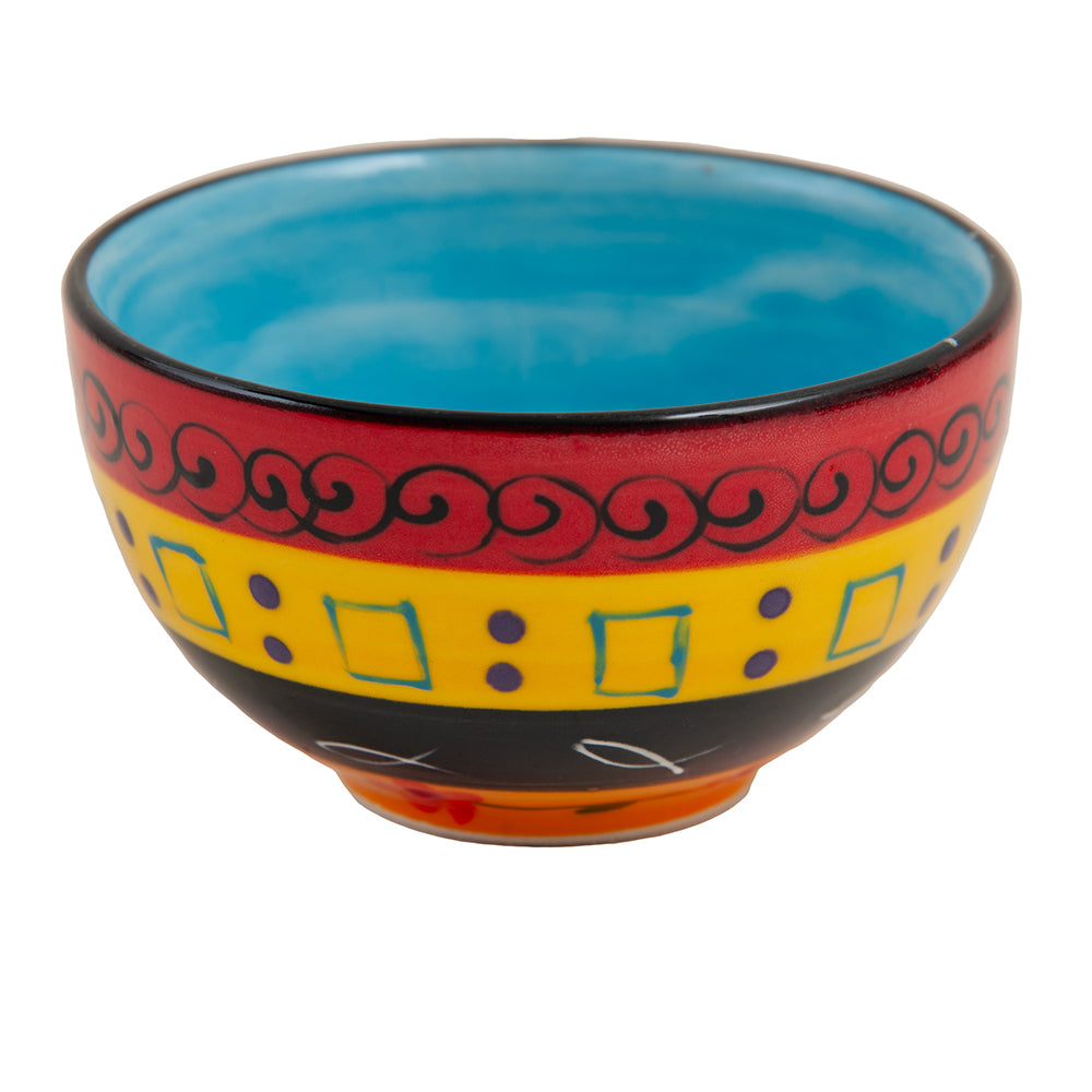 Ceramic Dessert Bowl, Hand Painted, Multi Coloured Ethnic Design