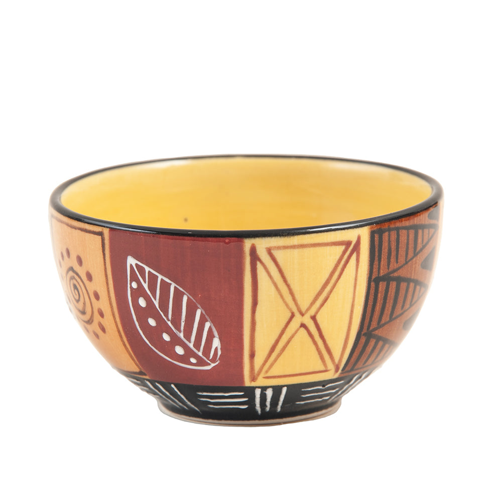Ceramic Dessert Bowl, Hand Painted, Safari Gold Design