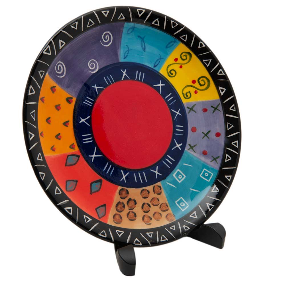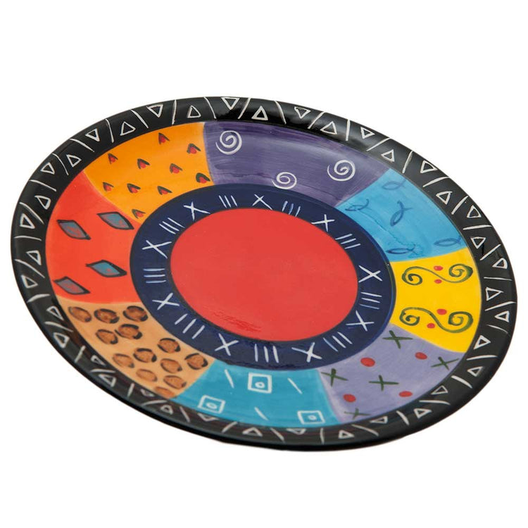 - A vibrant ceramic side plate, with a rainbow-inspired Multi-Coloured Ethnic design. Each piece is uniquely hand-painted, with variations adding to its charm. Ideal for colourful or African-inspired decor.