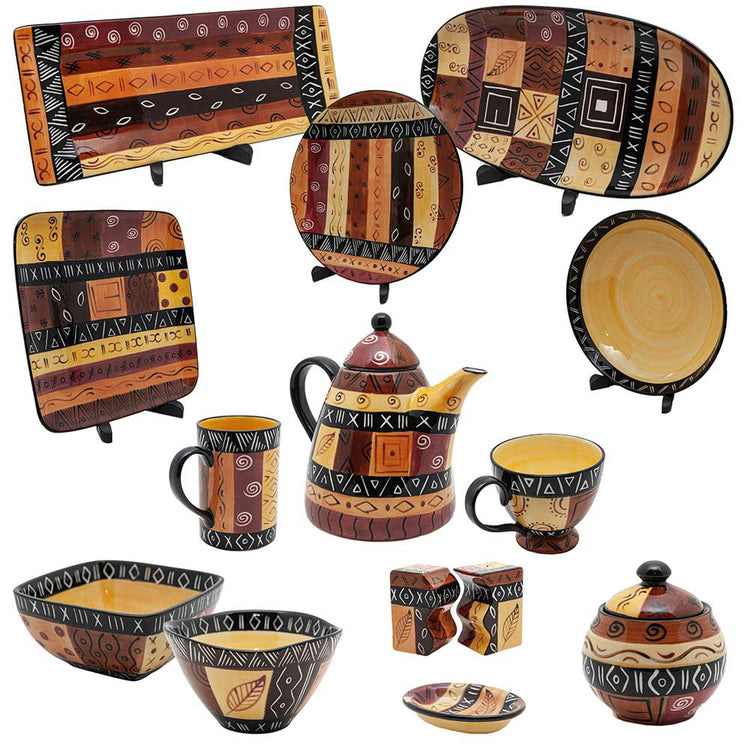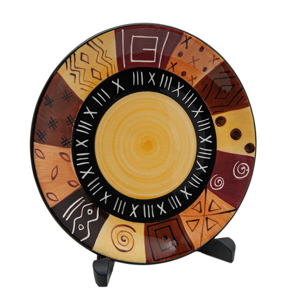 - A vibrant ceramic side plate, with an African wilderness inspired, Safari Gold design. Each piece is uniquely hand-painted, with variations adding to its charm. Ideal for colourful or African-inspired decor.