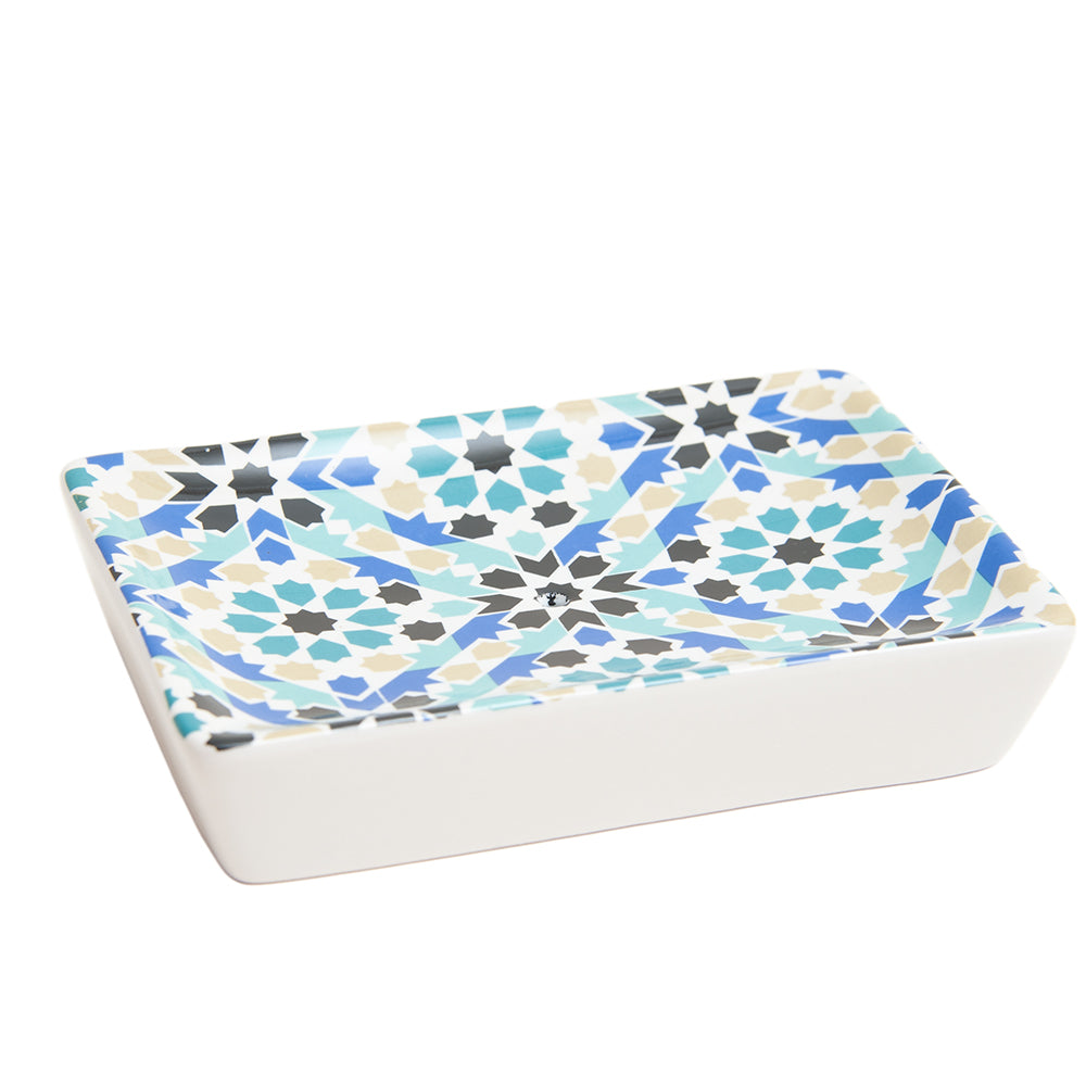 Ceramic Soap Dish, Blue Mosaic French Design