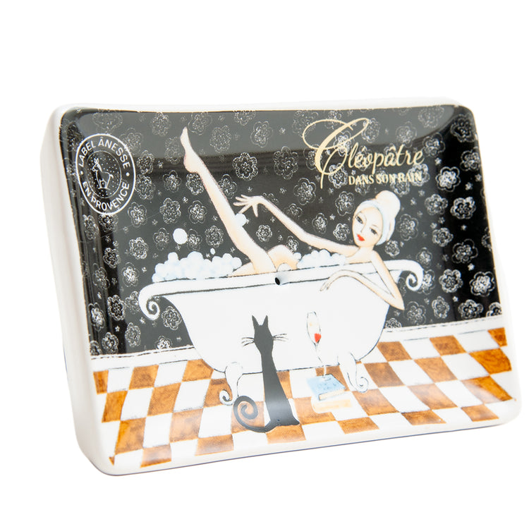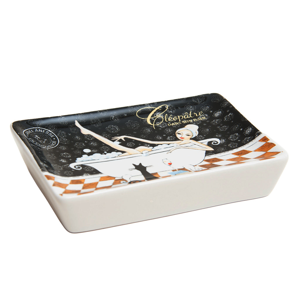 - White soap dish with Cleopatra design to bring your sink to life. The drainage hole stops the soap from getting damp when it is not in use.