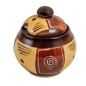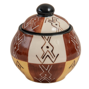 Bold, Earth tones inspired, sugar bowl, rooted in African design. Great for colourful homes, tea sets, or morning coffee rituals.