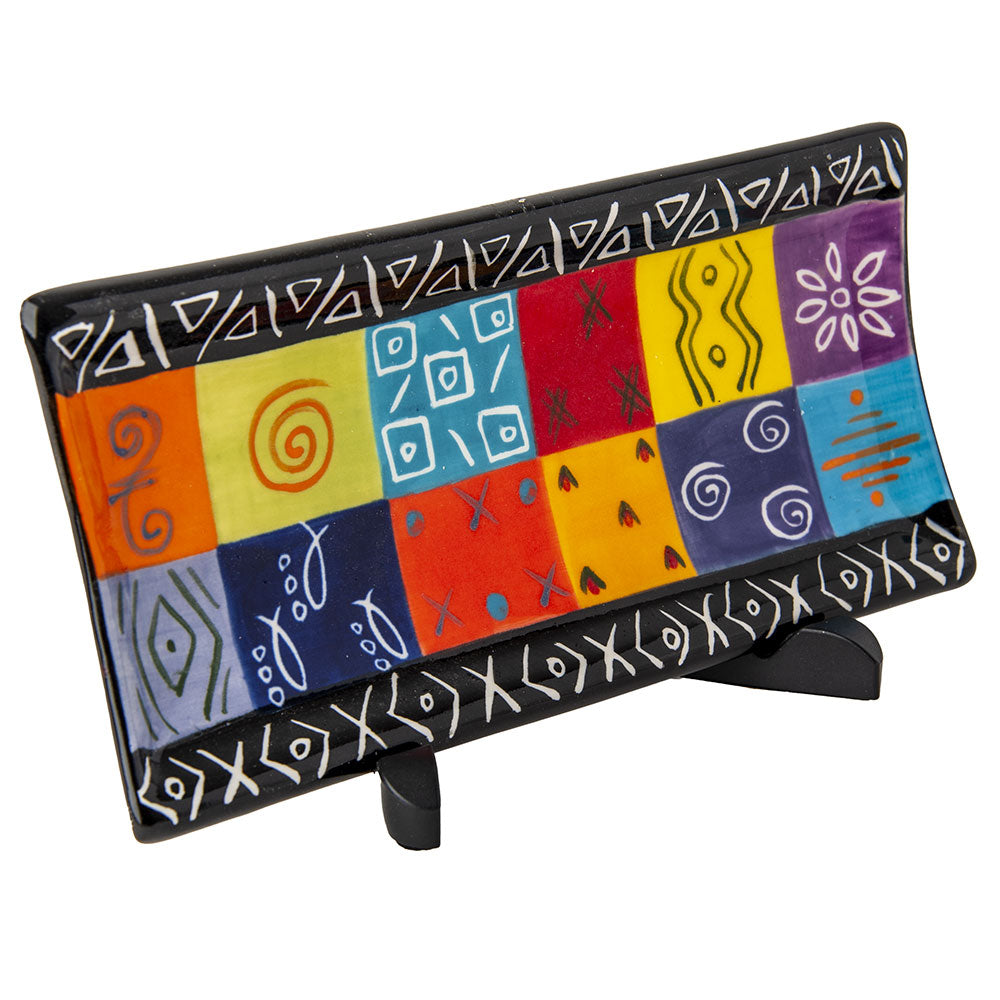 Bright rainbow inspired sushi plate, rooted in African design. Great for colourful homes, both functional and decorative.