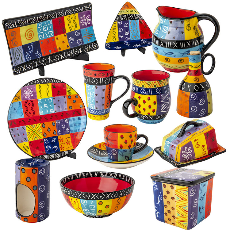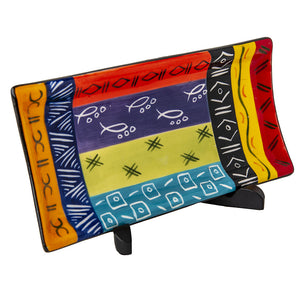 - A vibrant ceramic sushi plate, with a rainbow-inspired Multi-Coloured Ethnic design. Each piece is uniquely hand-painted, with variations adding to its charm. Ideal for colourful or African-inspired decor.