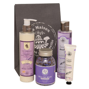 Contains 1 x 30ml lavender hand cream, 1 x 250ml lavender body moisturiser, 1 x 300g lavender bath salts, 1 x 250ml lavender shower gel.