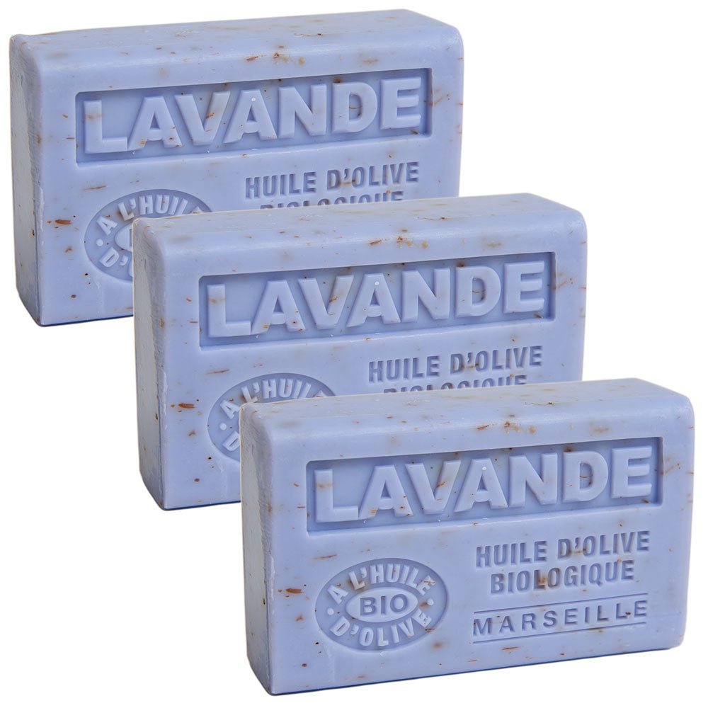 French Exfoliating Olive Oil Soap with Shea Butter, Crushed Lavender Fragrance, 125g