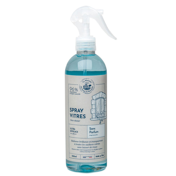 - This glass cleaner spray with Marseille soap and white vinegar is more than 95% biodegradable.