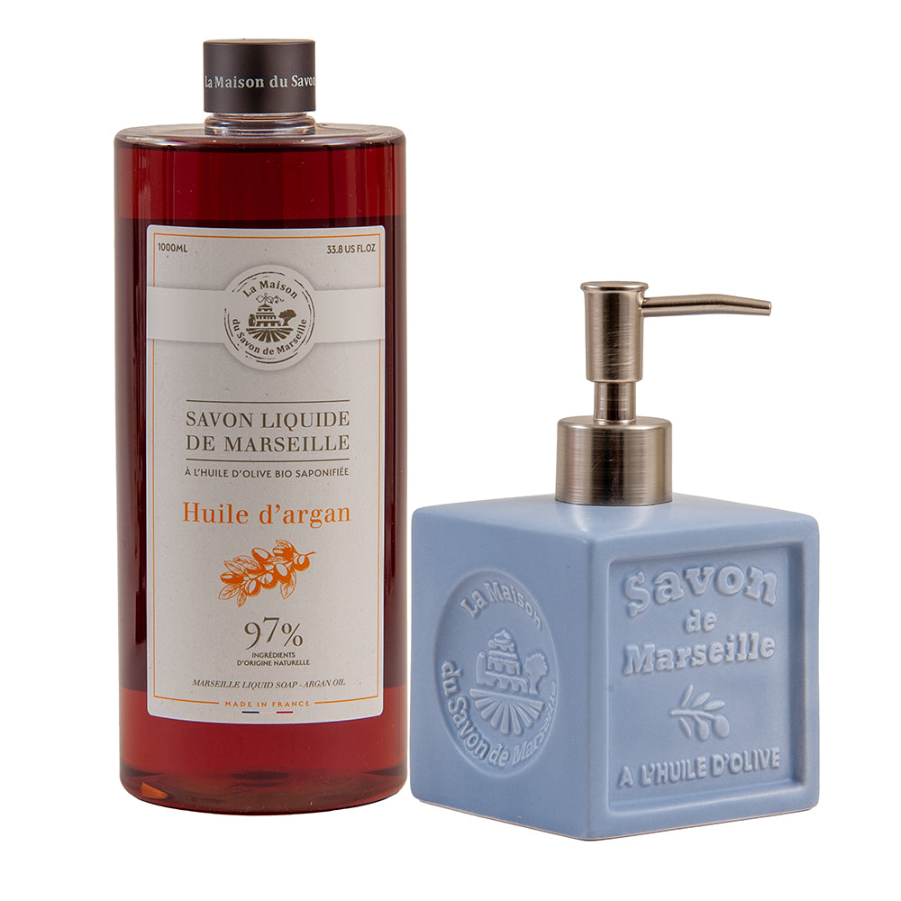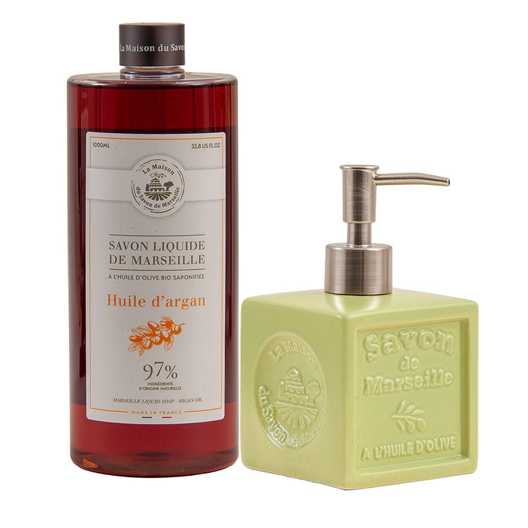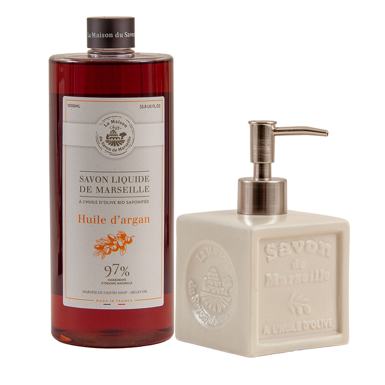 French Liquid Soap, Ceramic Soap Dispenser, Argan Oil, Argan Oil Fragrance, 1 Litre and 300ml