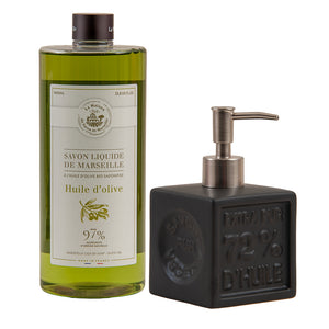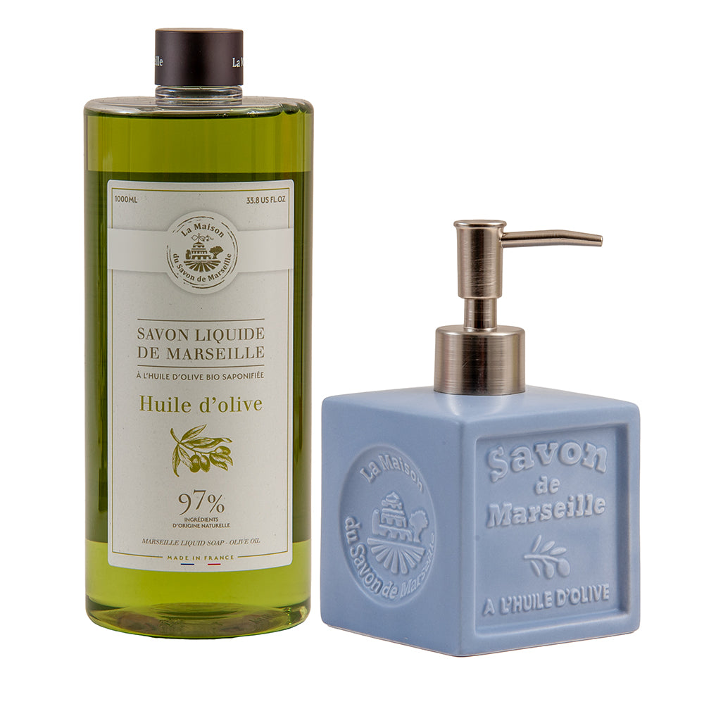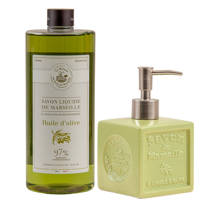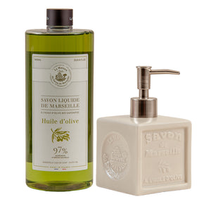 French Liquid Soap, Ceramic Soap Dispenser, Olive Oil, Olive Oil Fragrance, 1 Litre and 300ml