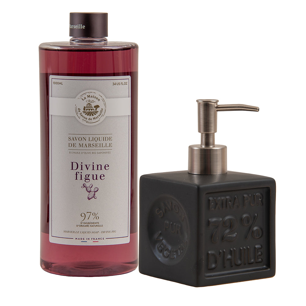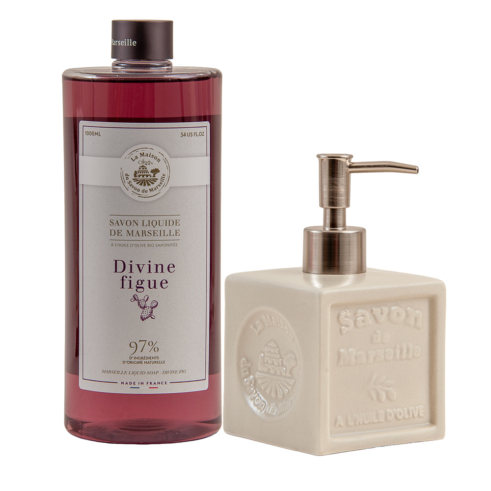 French Liquid Soap, Ceramic Soap Dispenser, Olive Oil, Prickly Pear Fragrance, 1 Litre and 300ml