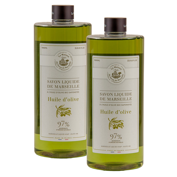 French Liquid Soap, Hand Wash, Olive Oil Fragrance, 1 Litre Bottles, Set of 2