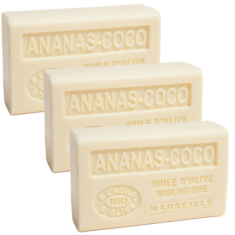 Olive oil and shea butter soften, nourish and protect the skin. The pineapple coconut fragrance will delight all those who love a fruity and tropical fragrance, reminiscent of the Caribbean