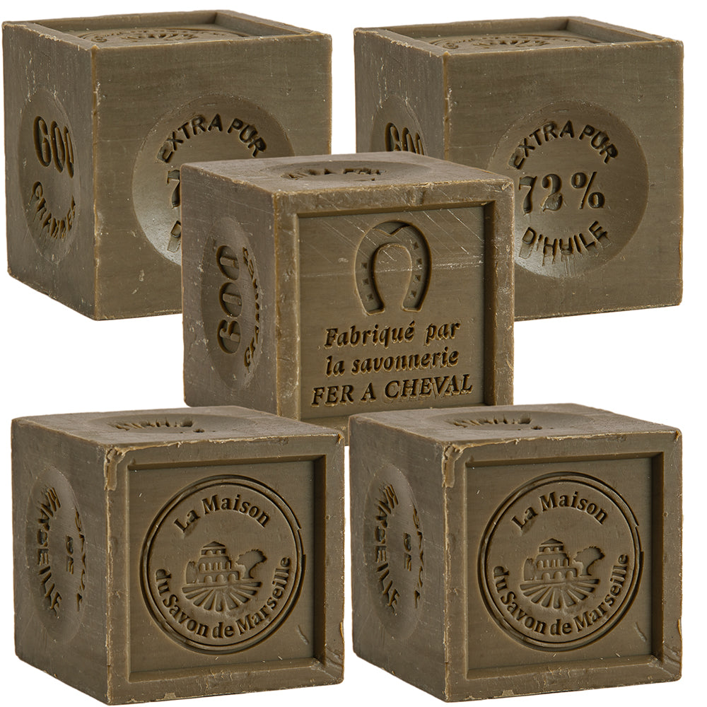 Authentic Marseille olive oil soap cube for moisturising skin care.