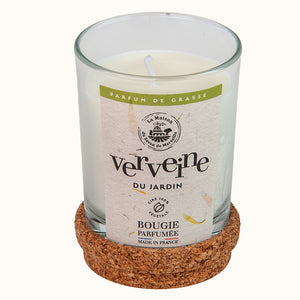 This verbena scented candle is in a luxury glass tumbler with a cork lid, adding a sleek and stylish look to your home