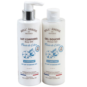 French Shower Gel and Body Lotion Set, With Organic Donkey Milk, Cotton Flower Fragrance, 250ml Bottles
