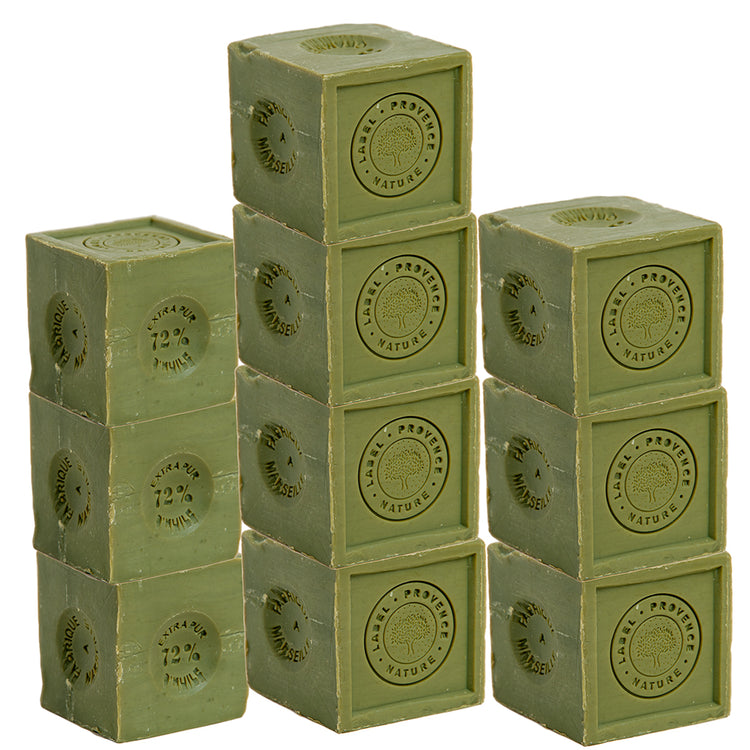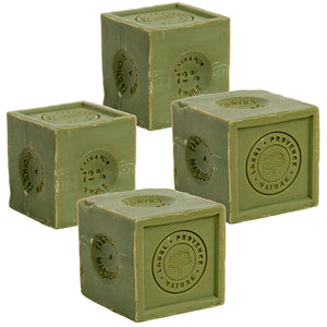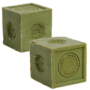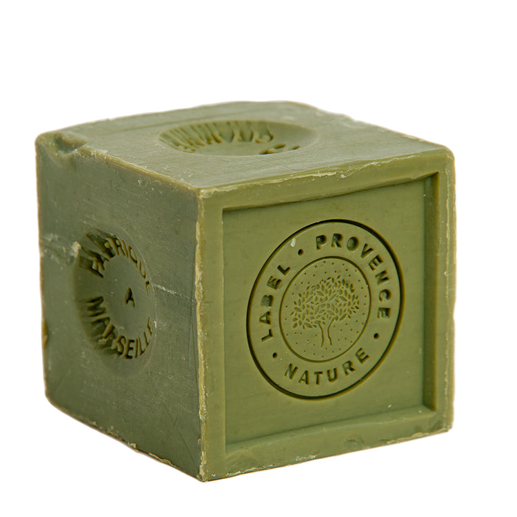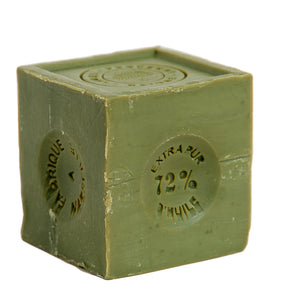 Authentic Marseille olive oil soap cube for moisturising skin care.