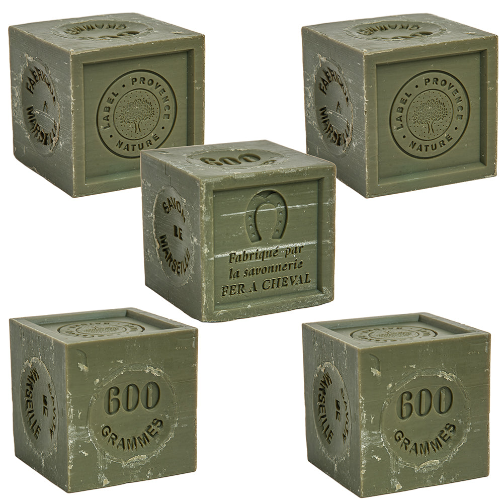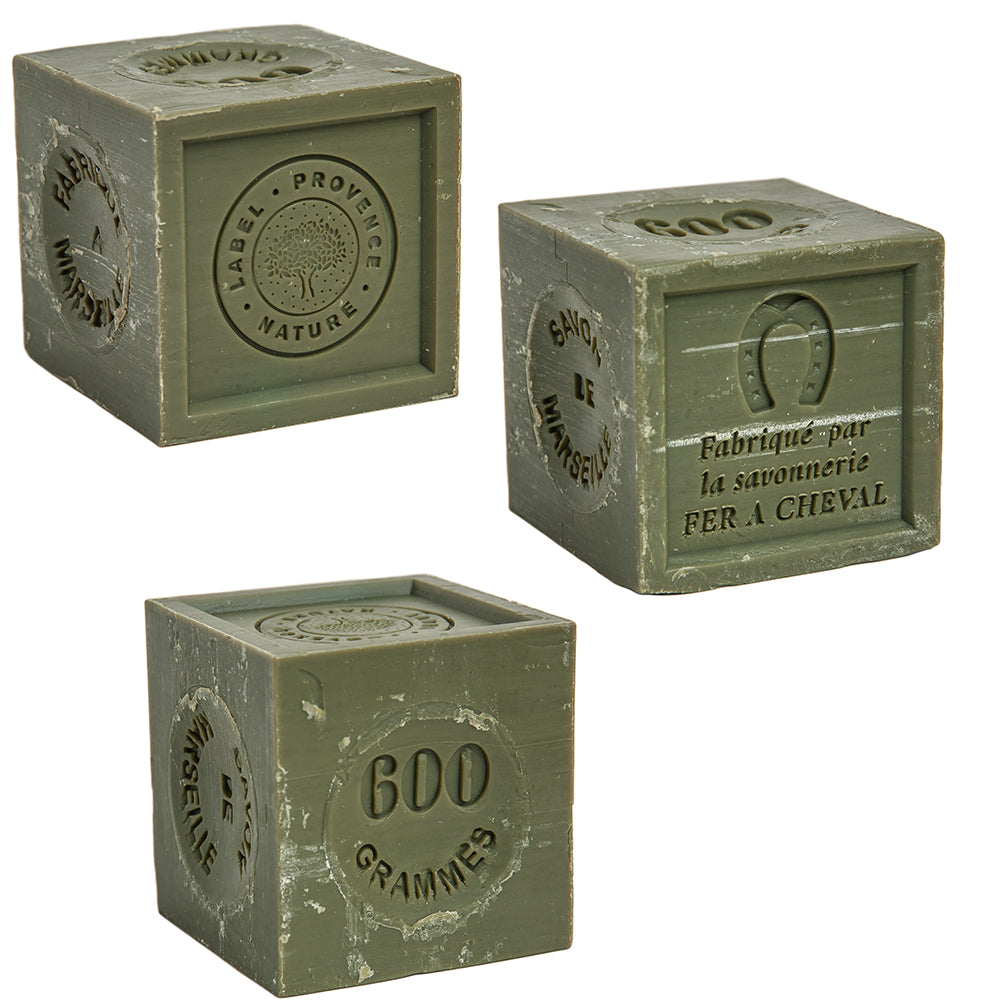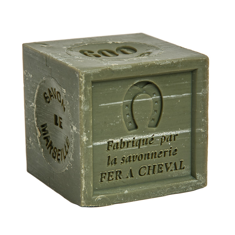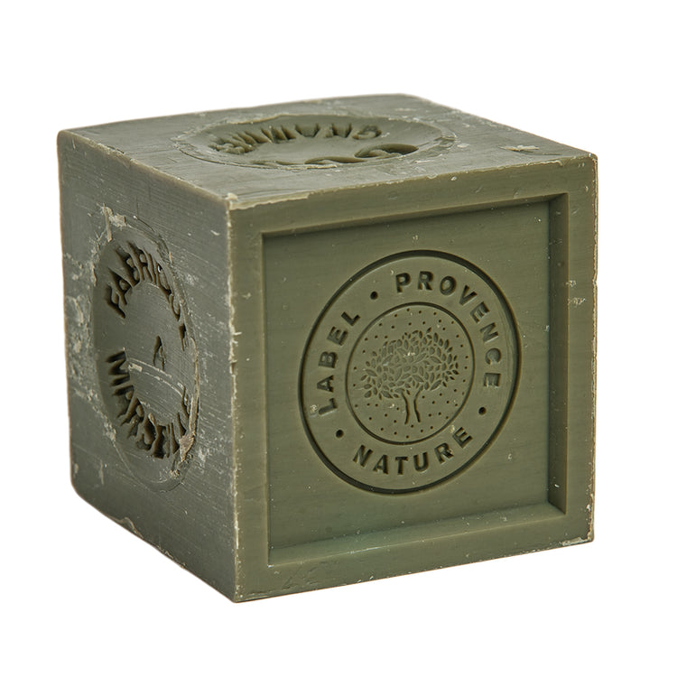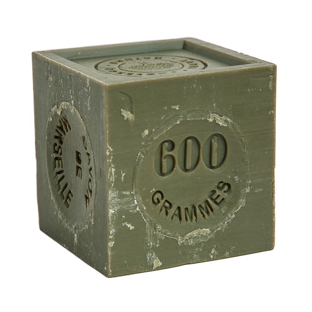 Authentic Marseille olive oil soap cube for moisturising skin care.