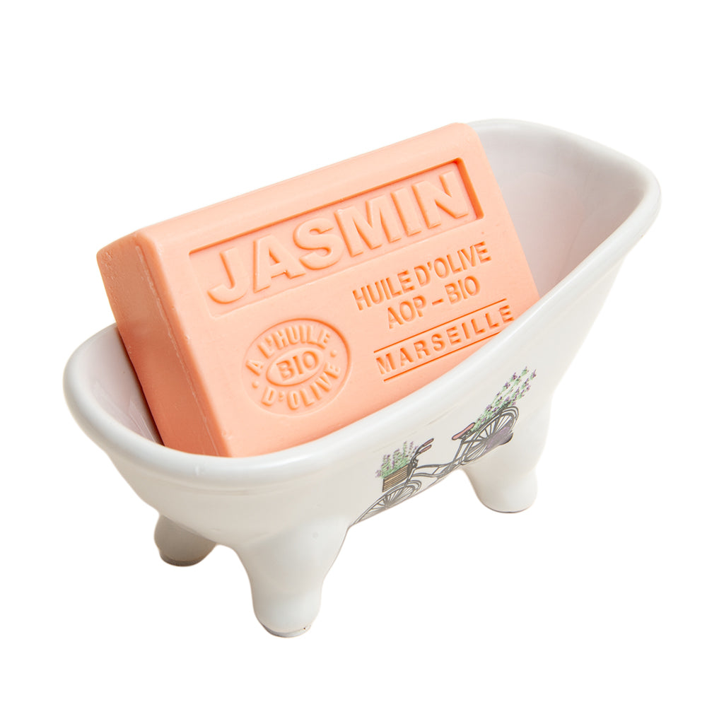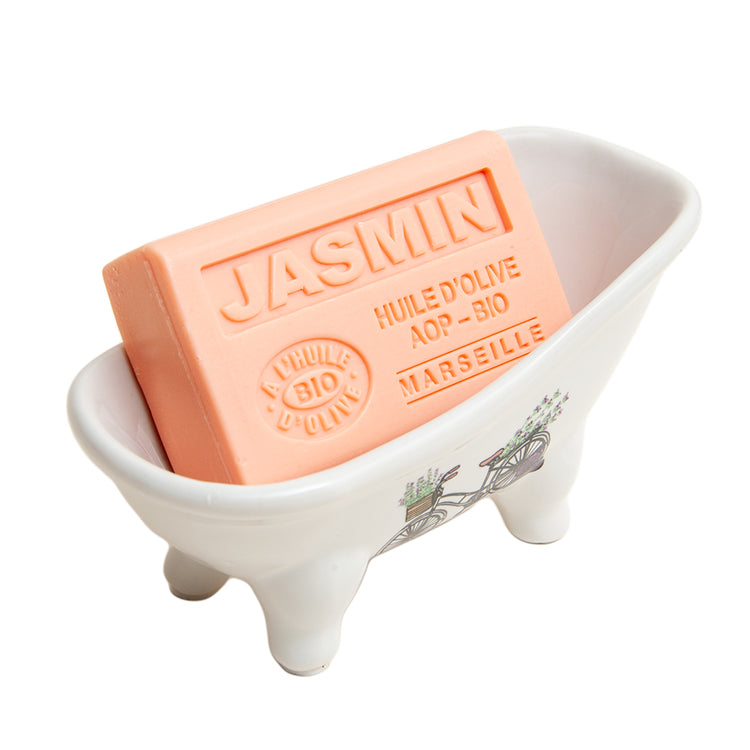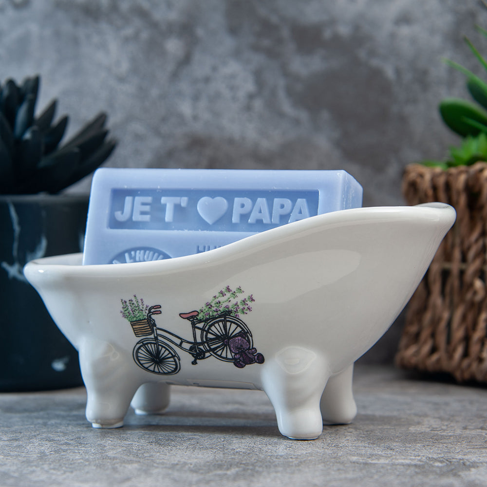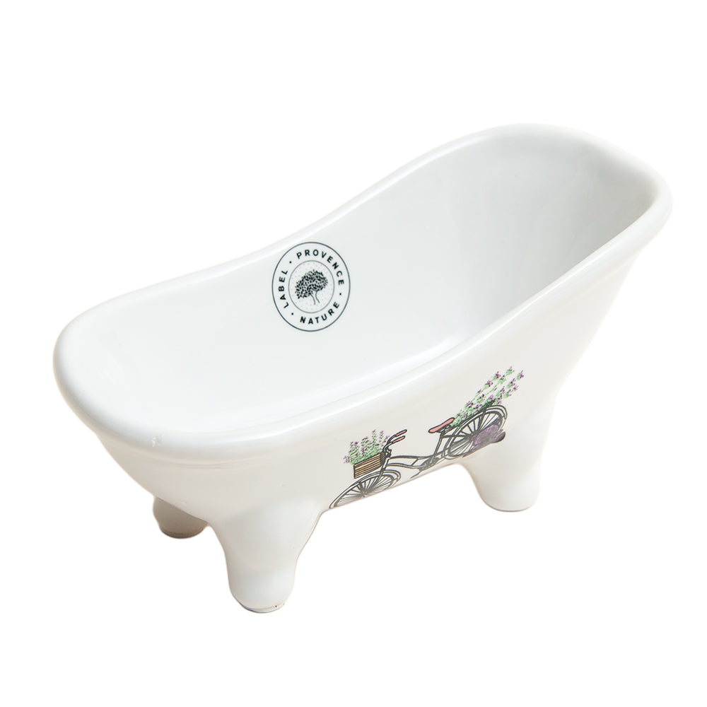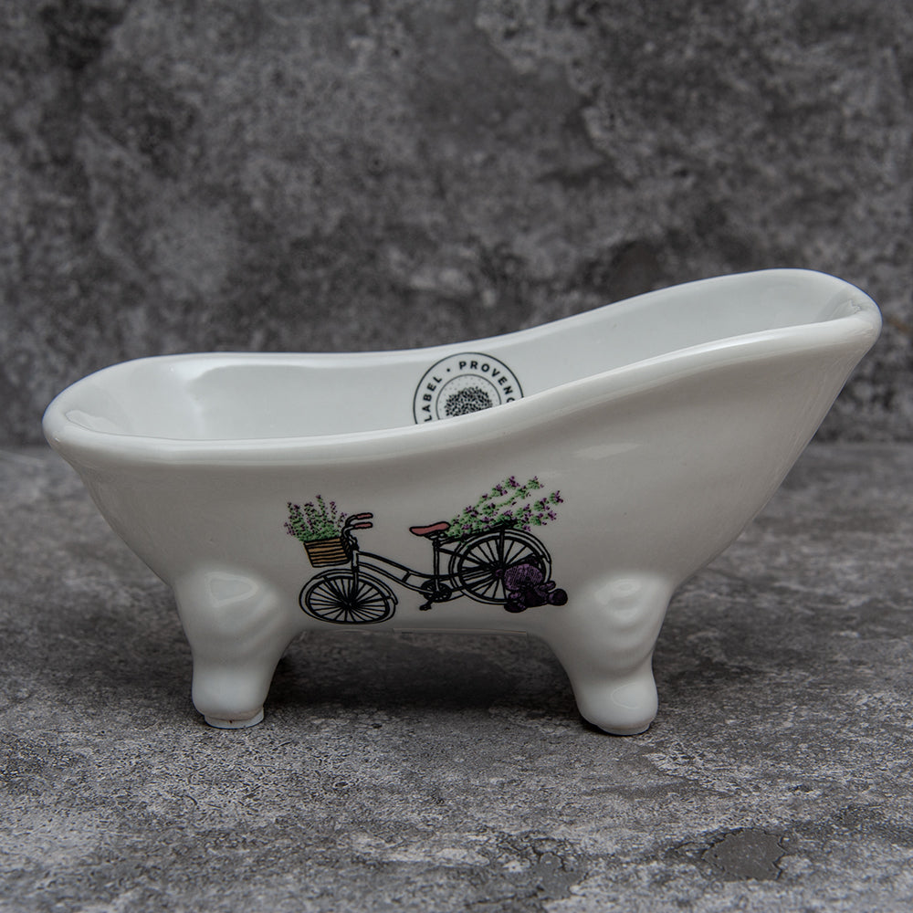 French Soap Dish, Vintage Style Ceramic Clawfoot Bathtub, Bike with Basket Design