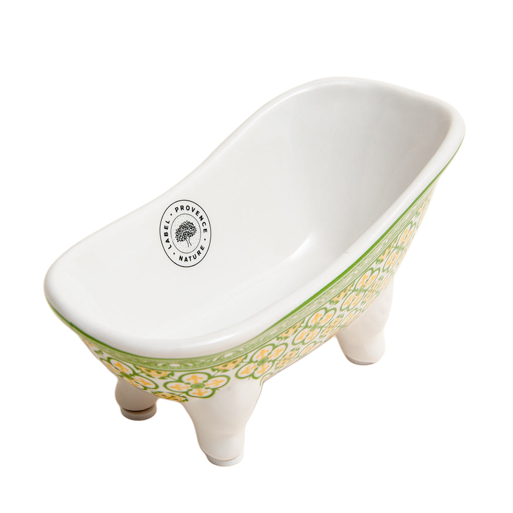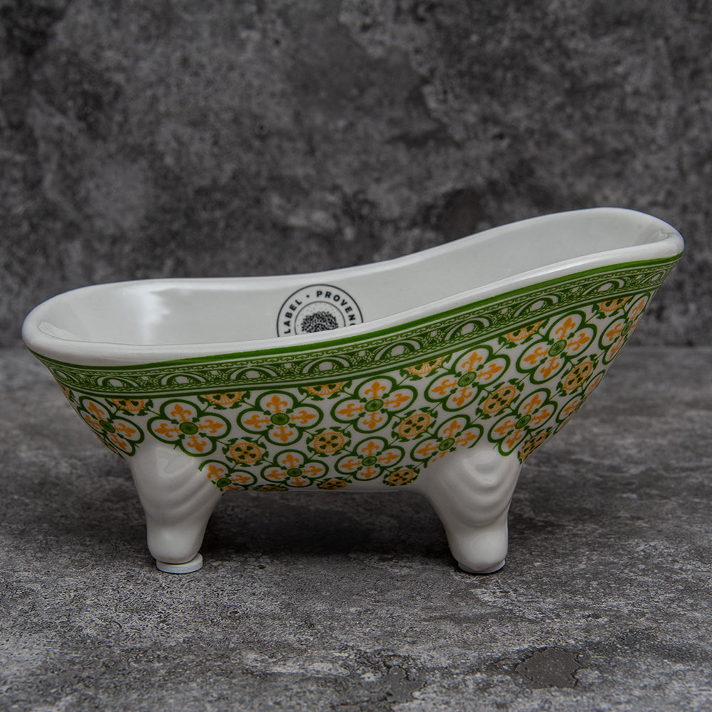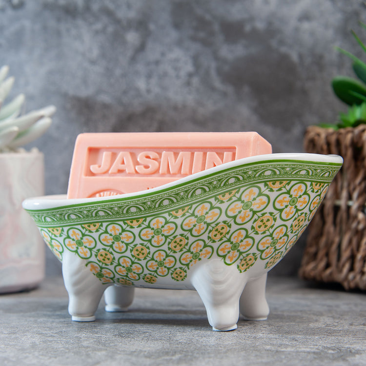 French Soap Dish, Vintage Style Ceramic Clawfoot Bathtub, Green Flower Tiles Design