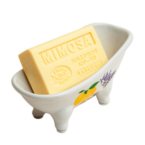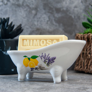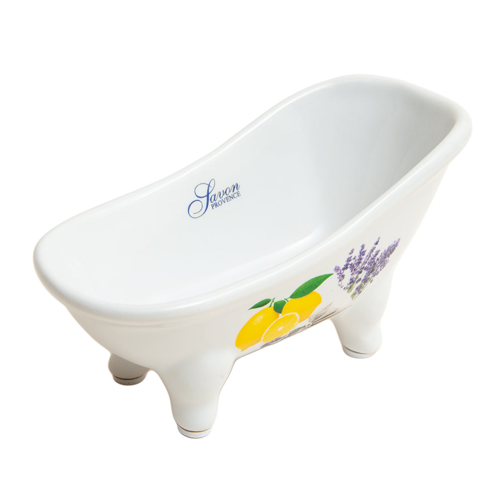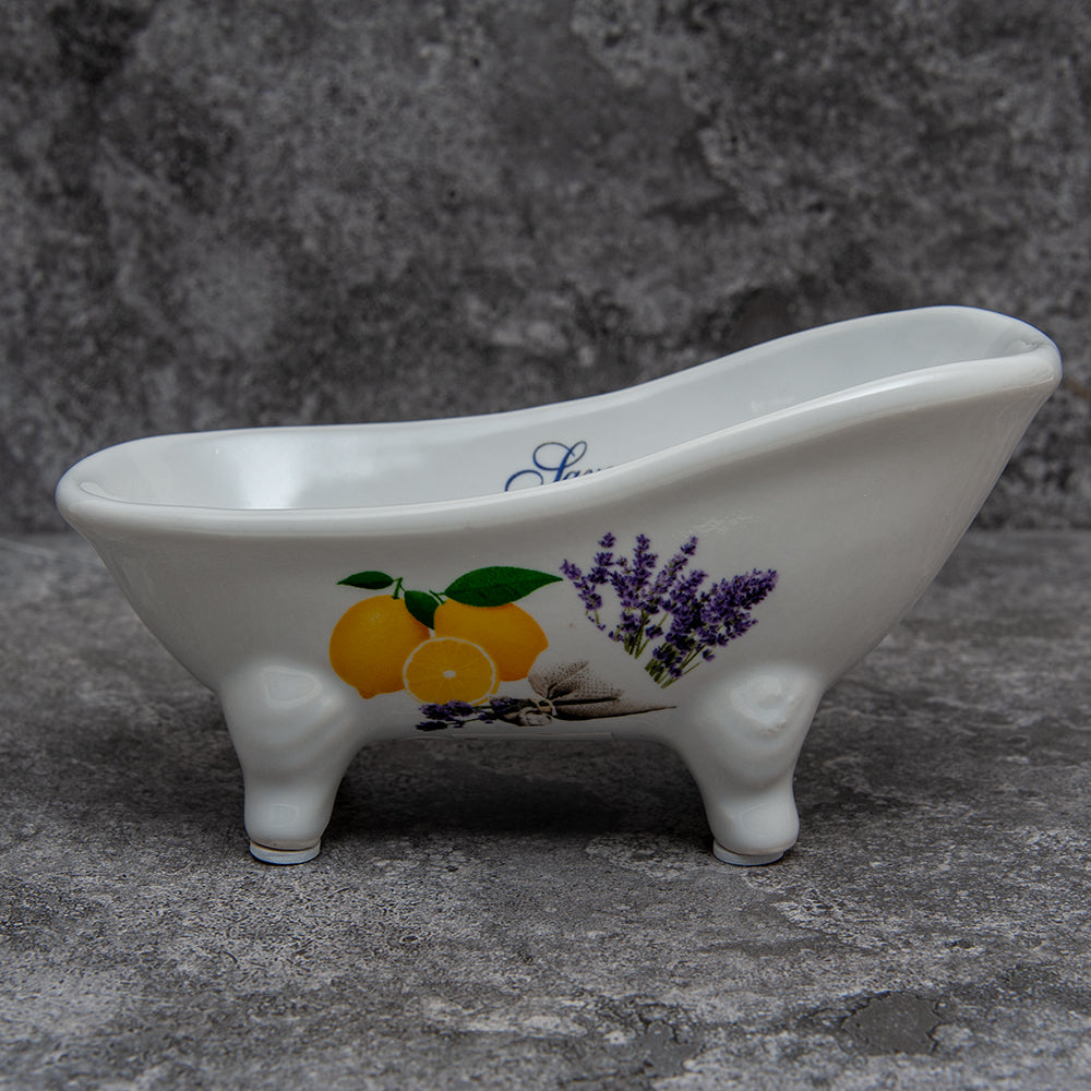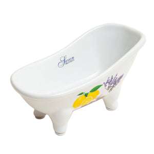 French Soap Dish, Vintage Style Ceramic Clawfoot Bathtub, Lavender & Lemon Design
