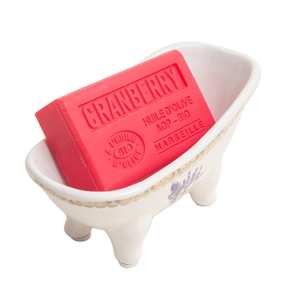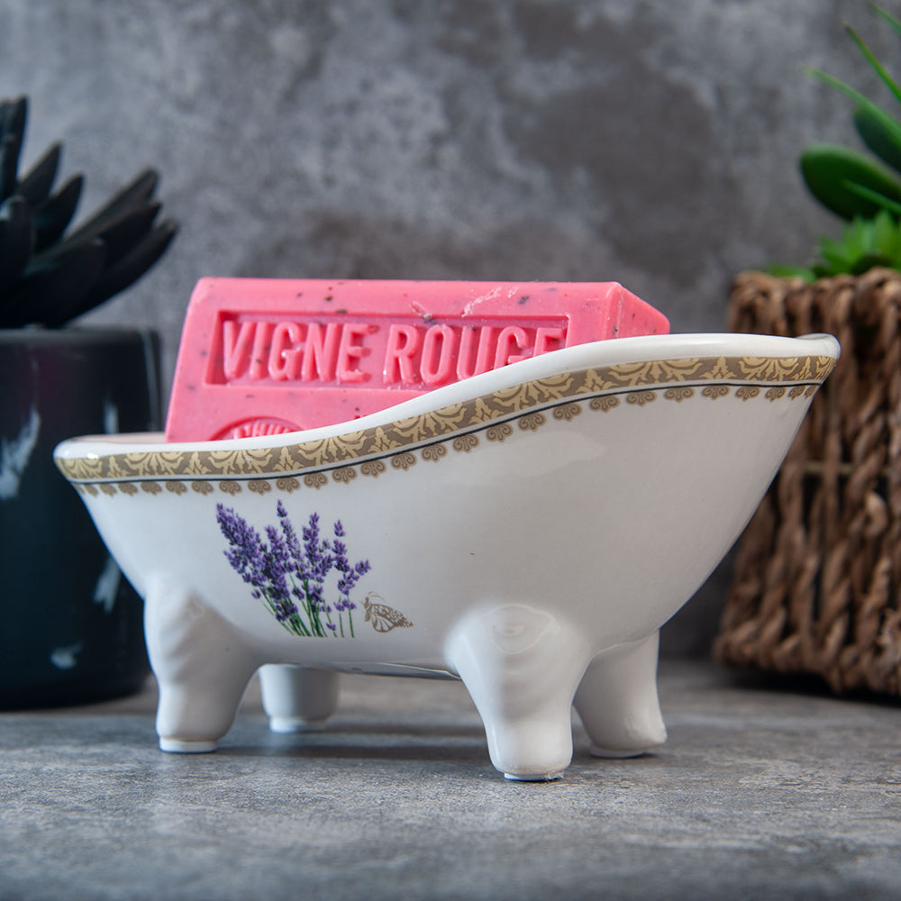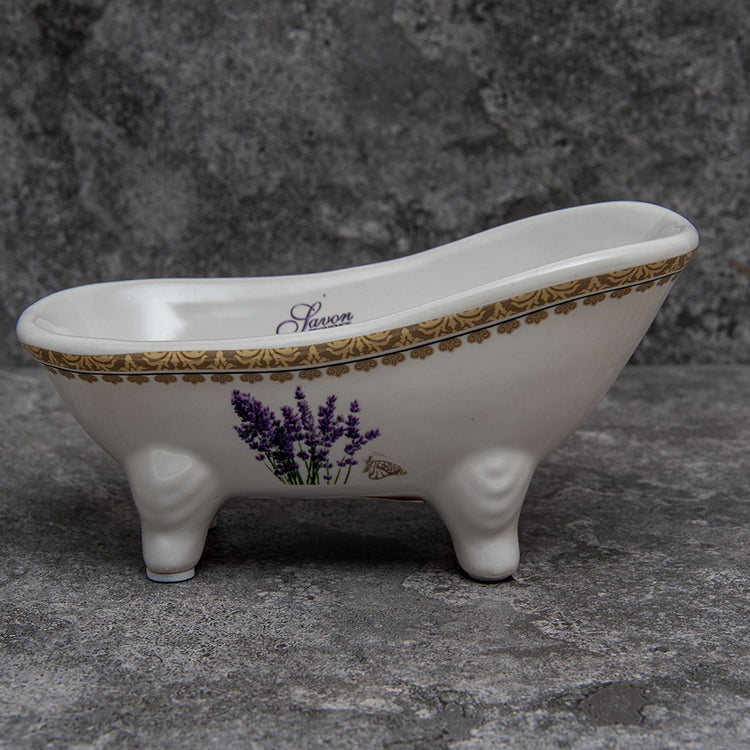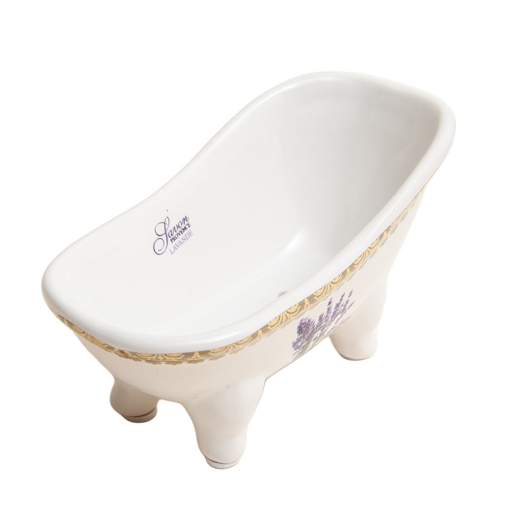 French Soap Dish, Vintage Style Ceramic Clawfoot Bathtub, White Lavender Design