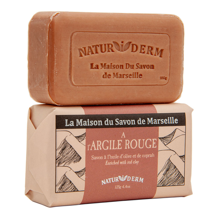 Natural French Naturiderm Soap, Olive Oil and Coconut Oil, Red Clay Enriched, 125g