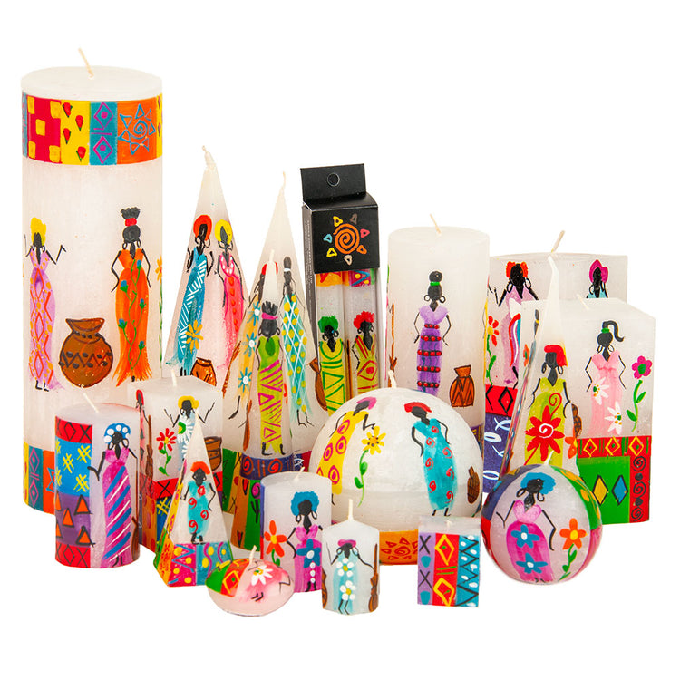 These candles are hand crafted and hand painted with particular attention to detail by South Africa's imaginative Artisans, and have non-toxic pigments, fully refined wax, and additives of the finest quality.