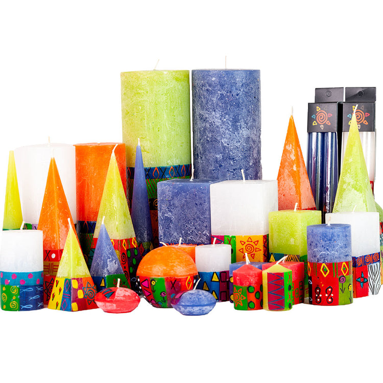 These candles are hand crafted and hand painted with particular attention to detail by South Africa's imaginative Artisans, and have non-toxic pigments, fully refined wax, and additives of the finest quality.