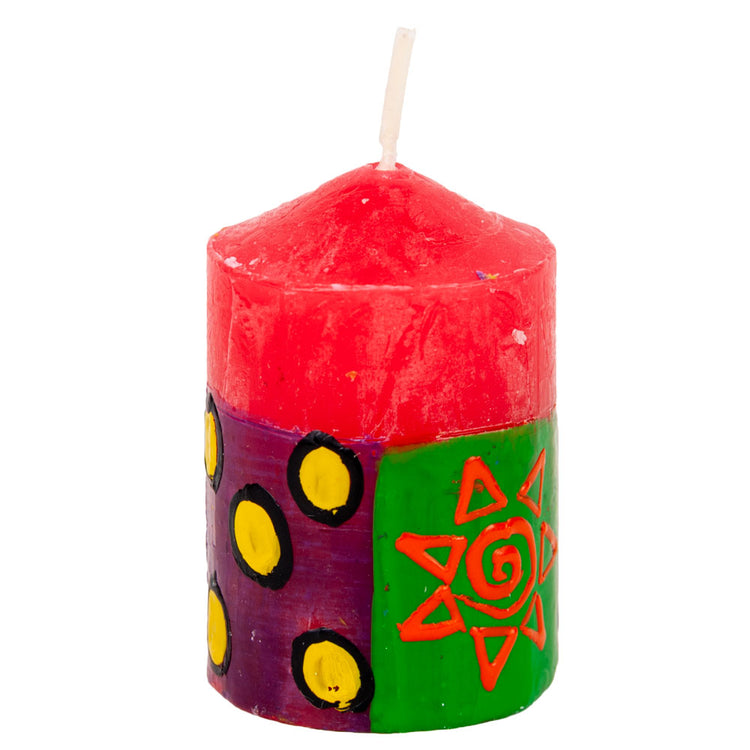 South African Candles, Single Wick, Frosted Multi Coloured Ethnic Design